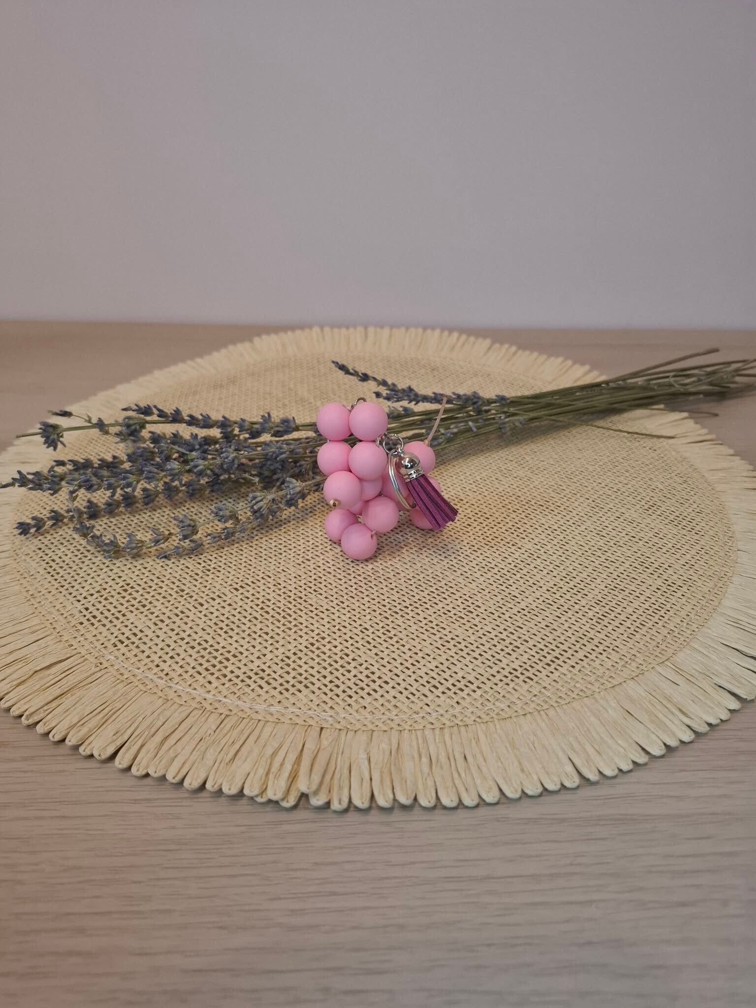 Kleur: roze met paarse flosj